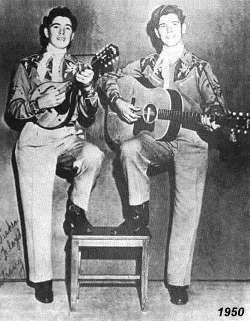Among the best of these acts are the Armstrong Twins. Born in Dewitt, Arkansas, January 24, 1930, Floyd and Lloyd Armstrong were not the first in their family to perform country music. Their mother, Lois, played piano, ukulele, and autoharp and for a few years worked with Edna Durfee on KLRA, Little Rock, as 'The Sunshine Girls'. Her sons began their professional careers in 1935 when they did a gospel number, Walking Arm in Arm with Jesus, on a kiddies' show over KARK, Little Rock, and they soon became regulars on the station's Boy's Club Saturday morning talent show. Shortly afterwards they also worked on another local program, 'Gathright Pay-Off'.