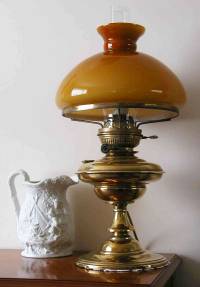 We relied on oil lamps and that for lighting. In fact that’s one of them on the sideboard there. That one used to stand on our kitchen table in Heyshott. There’s a cable in it now, you can see. I converted it.