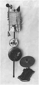 Along with his stump fiddle Benny Dougal added to his one-man ensemble a foot-pedal operated pair of cymbals, a mechanical device percussion historian James Blades has suggested may have had its inspiration in the one-man band's use of a drum or cymbal operated by a cord attached to the performer's foot. While the foot pedal bass drum and cymbal became a significant addition to the American trap-drummer's kit in the early part of this century, it also played an exceptional role in the expanding capabilities of the one-man band.