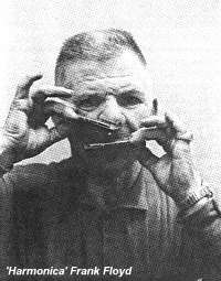 Harmonica Frank Floyd, who had a long career playing in medicine shows, also played guitar and harmonica but never felt comfortable with the harness. Instead he perfected (over a five year period) a technique of manipulating the harmonica with his mouth while he sang out of the other side. He could also play harmonica with his nose and thus play two harmonicas at once, a skill he shared with blues harp players Walter Horton and Gus Cannon's partner Noah Lewis.