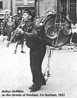 You can figger it out: I'm ninety years old now, so I don't know exactly when I was born at but you can figger it. I been playin' on Maxwell for about ten years off an' on, I reckon. Playin' by myself. I'm a what they call a one-man band. Don't need no other fellers 'cause I play my own guitar and I got this harp on this rack round my neck so's I cin play it and I stomp with my foot. So I jest set my box on the corner of Maxwell and Peoria and I'm a whole band.Practical considerations such as these are the most often expressed motivations of one-man band performers, but if everyone who experienced such frustrations felt moved to create a one-man band there would be far more in number. There is something deeper at work in this extraordinary impulse to play it all, alone, at one time, with all the requisite physical agility, and to play it so joyfully. There is a radical independence at work here, an urge to confront and explore human capabilities and possibilities, an urge to realise a unique and playful thought. In other words, even if the musical results may have at times been crude and musically not very interesting, what is significant is that the attempt was made, that the idea was considered and acted upon, often with a lifetime of dedication.14