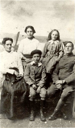 Richard and Elizabeth married in the fourth quarter of 1902, and had three children, of which George was the second eldest, superseded by his sister Emily who was born in 1903, with sister Olive following in 1909. Electoral registers from 1904 to 1907 day indicate the family lived at Westwell Leacon on the eastern fringe of Little Chart village itself. Richard Spicer's name is absent from those of 1908 and 1909, seemingly still in the area as Olive was born in the second quarter of the latter date in the West Ashford district. Baptismal registers too are curious, as Emily's was at Westwell parish church, George's at Little Chart, but no local entry is found for Olive's. Between 1910 and the Great War, the family lived at Yew Tree Cottage in the middle of Pluckley, about three kilometers west of Little Chart, the 1911 census recording him as a domestic gardener. One assumes that only Richard's comparatively high age prevented a more active service during the 1914-18 War (he was 34 years old at the time), or that he had acquired mechanical skills somewhere as well as worked the land. Either way, his deployment in the Royal Flying Corps was secured, but not in the officer elite, despite a family photograph with him in uniform posed in front of an aeroplane at an unknown aerodrome. We are unsure as to his exact mode of service.