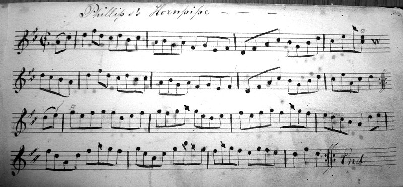 Phillips's Hornpipe, John Moore's manuscript (reproduced by courtesy of the English Folk Dance and Song Society)