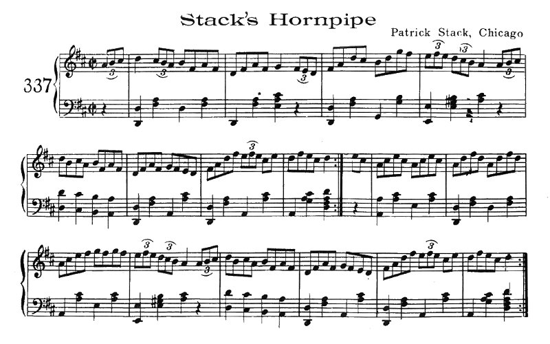 The Stack in question was the fiddler Patrick Stack, an engineer by profession, originally from Ballyconry, in the north of Co Kerry, who provided O'Neill with manuscript collections from the area as well as items from his own repertoire.