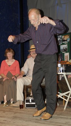 Dick learnt to step from his mother's family at the age of seven in 1928. Stepping in the Neave family can be traced to Dick's great-grandparents. When Dick was young he saw many dancers of a similar style. His dancing can be broken down into three basic movements taught to him by his uncle George: the single, double and treble. In addition to these basic movements he employs shuffles, steps, hops and heel clicks to build up various sequences of movements which he fits together at will. Today he dances three routines: The Hornpipe, The Waltz and The March, the latter being a faster version of The Hornpipe.Dick Hewitt has used his dancing skill to great advantage throughout his life - in concert parties during the war, as an entertainer hired for weddings and other celebrations after the war, using the title of “Dick Hewitt the Norfolk Step Dancer.” His fame as a dancer contributed to his success as a publican during the ten years from 1964 that he ran The Three Horseshoes at Briston. Dancers and musicians were welcome and he kept a collection of musical instruments behind the bar, serving late on a good night. The pub was a favourite of travellers such as the Wests who were known to stay all day playing, singing and dancing.”