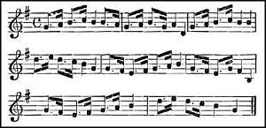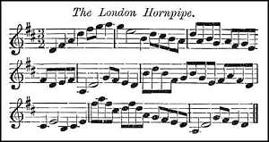 The following (right) is a fairly typical example of an early triple time hornpipe; it is found in several books of country dances issued about 1735 as - Wright's Collection of 200 Country Dances, vol. i., and one of Walsh's Compleat Country Dancing Master, etc.