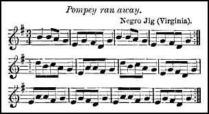 and one characteristic specimen from Aird's Selection of Scotch, English, Irish, and Foreign Airs, vol. i. [1782], is appended. It has the incessant repetition of phrase found in so many negro airs. One or two others from Virginia are in the same work. The words of these Plantation melodies seem to have been merely a string of sentences concocted on the spur of the moment by the singer as he performed the 'Walk Round' (much the same sort of thing as the 'Cake Walk' of to-day), while a steady clapping of hands from the spectators marked the time.