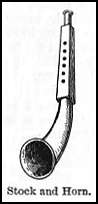 Tell my friend Allan ... that I much suspect he has in his plates mistaken the figure of the stock and horn. I have at last gotten one; but it is a very rude instrument. It is composed of three parts, the stock which is the hinder thigh bone of a sheep ... the horn which is a common Highland cow's horn cut off at the smaller end until the aperture be large enough to admit the stock to be pushed up through the horn, until it be held by the thicker end of the thigh bone; and lastly, an oaten reed exactly cut and notched like that which you see every shepherd-boy have, when the corn stems are green and full grown. The reed is not made fast in the bones but is held by the lips, and plays loose on the smaller end of the stock; while the stock with the horn hanging on its larger end, is held by the hand in playing. The stock has six or seven ventages on the upper side, and one back ventage, like the common flute. This of mine was made by a man from the braes of Athole, and is exactly what the shepherds are wont to use in that country. However, either it is not quite properly bored in the holes, or else we have not the art of blowing it rightly, for we can make little of it.