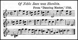 The striking tune named Of Noble Race was Shenkin first occurs in connection with D'Urfey's comedy The Richmond Heiress, acted 1693,