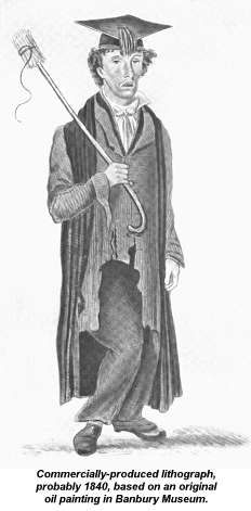 The Hon. Heneage Legge was elected Member of Parliament in this year. There was a great row at the election. When the Corporation went into the Town Hall to complete the election the crowd collected round the building and became exceedingly riotous, sending a shower of stones at the Town Hall windows. It had been intimated that there would not be so much beer given away as formerly, which enraged the mob. The Corporation tried to mend matters by offering beer, but this peace offering they then refused to accept. Bloxham, the sheriff's officer, put his head out of window holding a jug in his hand, and called out "Plenty of beer! plenty of beer!" but a shower of stones made him speedily withdraw. Two men then appeared carrying a large tub of beer slung on a pole; this the mob poured down a drain in the Market Place. The pebbles with which the Market Place was paved were turned up and used as missiles, the windows of the Town Hall being completely smashed. The mob threatened to pull the Town Hall down, with the Corporation inside it, and began picking at the pillars which supported it. The Rev. T.W. Lancaster, the Vicar of Banbury, who was a member of the corporate body, climbed into a sort of cock-loft under the clock, this did not bear his weight, and he went through, but happening to bestride a joist, he sat there with his legs dangling through the ceiling. One by one the members managed to steal away. Mr. William Walford got out and was walking across Corn Hill when half a brick, part of the Town Hall, hit him in the back, and he managed to get into the Plough Inn. Many others were hurt, and much rioting continued all day and night. [9 /pages 18-19]