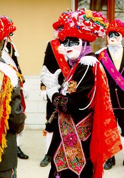 The dance is structured on pairs of dancers who remain together throughout the carnevale. One of the pair takes the role of the 'chief' (capa) - the livelier of the two - and the other the 'figure' (figura). The capa e figura represent the male and female roles. This pairing is centrally important to the stylistic integrity of the dances and the ritual - indeed, some pairs have worked together throughout their dancing lives. (photo left)