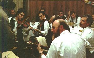 The Apprenticeship - Once, the trainee fiddler learnt his art within the family; having heard the music from birth and - after carefully listening to father, elder brother, uncle - practising on their instruments. There was rarely much of a teacher/pupil relationship, rather a willingness to emulate, to learn, to be successful - and to reap the considerable rewards. Those who didn't belong to a musical family had to hang about the pubs and kitchens where fiddlers used to meet, and then try to keep the tunes in their heads long enough to get to a borrowed fiddle. This must have been very difficult, because all the tunes have two or even three 'voices', and someone playing the music alone was almost unheard of.
