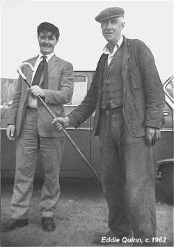When he was 65 years old Eddie retired from work and settled with his wife in a Buccleuch Estates retirement cottage in the village of Eckford, just off the A698, between Kelso and Jedburgh. According to a neighbour, Doug Gotterson, Eddie would still play the accordion at home, and could play 'all night long without repeating a tune'. Gradually, though, his musical days came to an end and Eddie passed away on 20th February,1982. Had he made more records he would, I am sure, have become as famous as William Hannah or even Jimmy Shand for that matter. But that was not to be. At least now there is a face and a story to go with the name and, of course, there will always be that wonderful handful of unique recordings made by Eddie Quinn, the 'Button accordion champion of the Borders' .