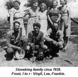 Anyway, my mom was a decent fiddle player and her father was a banjo player too. My granddad on my dad's side of the family was named Frank Burgess Stoneking and he always said that he was The Best Stoneking Fiddle Player. But Granddad had four other brothers and each of there claimed to be The Best Fiddle Player as well - I don't know how they worked that out between them.
