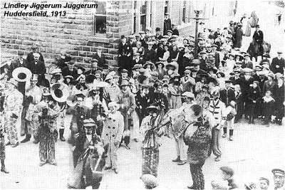 Bands using military names were also common such as The Airedale Fireside Lancers, Hunslet Nanny Goat Lancers, The Almondbury Highlanders and The Silsden Underground Artillery Jazz Band. Others stuck to a comic name, for example The Haworth Bingem Bangem, The Woodbine Willies (Meanwood), The Yeadon Rough and Ready, Jiggerum Juggerum (Lindley) and The Splishum Splashum Splushem Band (Otley)