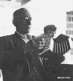D'you know, Peter went to Germany, to get one of these (a bandoneon). Well, he wanted to buy this off of me, but you know how it is, I didn't like the idea of getting rid of it. He wanted one of them, and he was in Germany and when he come back he said to me ''You know, Scan, they've left off making them bandoneons. I've just come back from Germany and l tried to buy one. This old chap, he'd got one of these bandoneons, it was an older one than this, it wasn't so good looking, but it was there alright, and I wanted to buy it off him. But do you think I could get him into the right mind to sell it. No, he wouldn't - 'cause they'd left off making 'em, see. And do you know," he said "I tried and tried!" And I kept expecting him to say "Why don't you let me have that one?". Well, if he comes along now, he can have it! (laughs) because it's too heavy for me now.