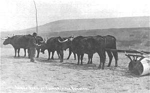 Work on the farm at this time was all done by the farm hands themselves, as there was no machinery.  At Stanmer Park there were sixteen horses making up four teams, plus one odd horse for taking food to the sheep and similar work.  There were also twelve large oxen for ploughing - two teams: six Welsh Blacks and six Sussex Reds.  Although there were often eight oxen to a team, only six were used at one time as a rule, as the ground was light hill-soil.   Sixteen men and boys were employed on this one farm.  Nowadays two tractors would do all the ploughing and sowing, which once needed four teams of horses.  By the time he was fifteen, George was ploughing with a pair of horses on his own (two horses were always called a Pair, three or four horses were a Team).
