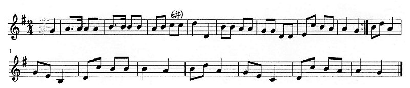 This accommodates the first half of any eight-line section of the song and the repeat of the phrases would take in the full stanza; but there is a caveat. The notation is not the same as that from Sam Cowell. In fact, Mr Tufts only sang the second half of Sam Cowell's tune - without benefit of a sharp note at the point indicated in notation given above.