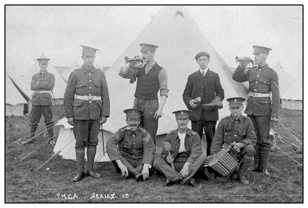 Is this a Territorial camp, as one of the buglers is partly in civvies, and where else would a sergeant mix with the men for a joke?