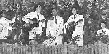 All of which, frankly, is fine with me. None of the lyrical content is at all offensive, and much of it is amusing. Much of it, of course, is not in English. In fairness to the Hawaiians, it should be mentioned that songs in their own language seem to rely on a good deal of wordplay which obviously isn't susceptible to translation. The Tahitians, apparently, tend to be rather more direct. They are well represented, especially on CD46, which includes two recordings of Tahiti o Tera, one by its composer Augie Goupil, and one under its French title Les Femmes d'Amerique by George 'Tautu' Archer and the Pagans. The song complains that American women are very pretty but too expensive, whereas Tahitian women are free. "Vive Tahiti, le pays des amours!". This may reflect the colonial fantasy, as do all the paeans to flirty, grass-skirted 'hula girls'; or it could just be fair comment on Americans. On the same disc, another Tahitian group, Les Tamarii Tahiti, sing a song which is very nearly Red River Valley - a timely reminder of the crucial role played in forming this music, by cowboy song, another heavily exploited & widely despised culture.