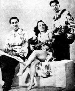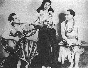 Clearly, 'Hawaiian' is a generic term. For our purposes, it takes in pretty much the entire Pacific. CD92 even includes an example of Indonesian Krontjong, in which the sweet-voiced Miss Ninja is accompanied by Victor Tobin's Sweet Java Islanders, a classic island string band including steel guitar, with locally characteristic violin thrown in. Tobin, incidentally, was also a member of a popular Indonesian band called the Hawaiian Big Boys. The Honolulu Queens, who appear on CD57, were a quartet of women from the Dutch East Indies, who were based in The Hague throughout the war years.