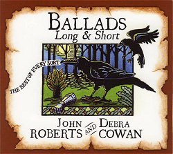 Which sort of brings me round to why I felt this CD was something of a surprise. John Roberts is pretty well-known in the States, and Debra Cowan already has four CDs to her credit. I just can't imagine a pair of English singers of similar stature releasing a record like this one. Most people here now realise that ballads are best sung solo ... and so don't generally release CDs containing (or purporting to contain) only ballads. When they do sing ballads, they generally don't sing them accompanied, in strict tempo, or with no melodic variation. Here, each singer has just one unaccompanied song: John Roberts Jim Jones and Debra Cowan The Bonny Hind. Both sing them fairly well, but each verse is to exactly the same tunes as all the others, and neither sound as if they've given much thought to the words or the story. To her credit, Debra does have one verse with an extra line - but I'm sure this was how her source, Tony Rose, sang it. Indeed, when source singers are mentioned in the notes, they are all revivalists ... it's as if it's not possible to hear recordings of British traditional singers in the USA. I know this isn't the case because many purchasers of MT Records' CDs (both actual and virtual) come from there. Still, I do realise that this present offering will sell far better than one comprising all ballads (the best of every sort), sung in the proper way, and sourced from recordings of real traditional singers, could possibly have done. I'll finish with a comment that far too frequently ends my reviews these days - what a shame!